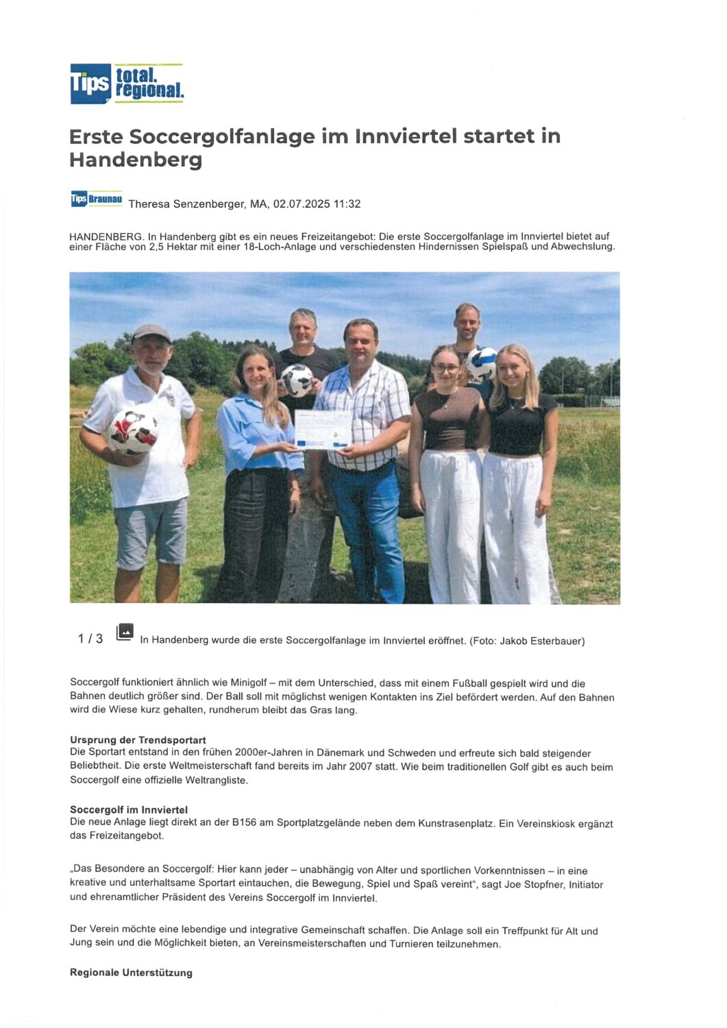 Erste Soccergolfanlage im Innviertel startet in Handenberg 2. Juli 2025Allgemein, PresseSimone Redemann Tips 02.07.2025