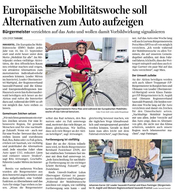 Europäische Mobilitätswoche soll Alternativen zum Auto aufzeigen 11. September 2025Allgemein, PresseSimone Redemann Braunauer Warte 11.09.2025