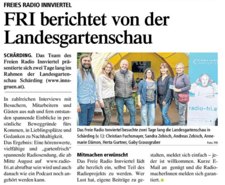 Freies Radio Innviertel FRI berichtet von der Landesgartenschau 13. August 2025AllgemeinSimone Redemann Tips 13.08.2025