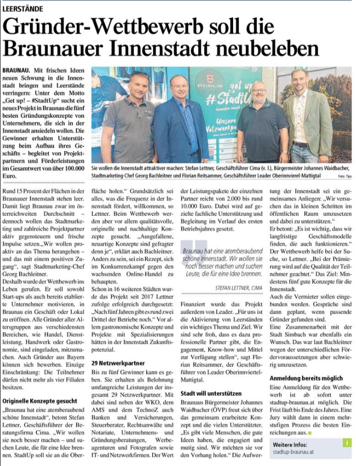Gründer-Wettbewerb soll die Braunauer Innenstadt neubeleben 25. Juni 2025Allgemein, PresseSimone Redemann Tips 25.06.2025