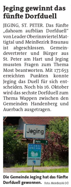 Jeging gewinnt das fünfte Dorfduell 16. Oktober 2025Allgemein, PresseSimone Redemann BezirksRundSchau 16./17. Oktober 2025