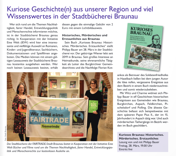Kuriose Geschichte (n) aus unserer Region und viel Wissenswertes in der Stadtbücherei Braunau 3. März 2025Allgemein, PresseSimone Redemann Braunauer Stadtnachrichten 207/2025