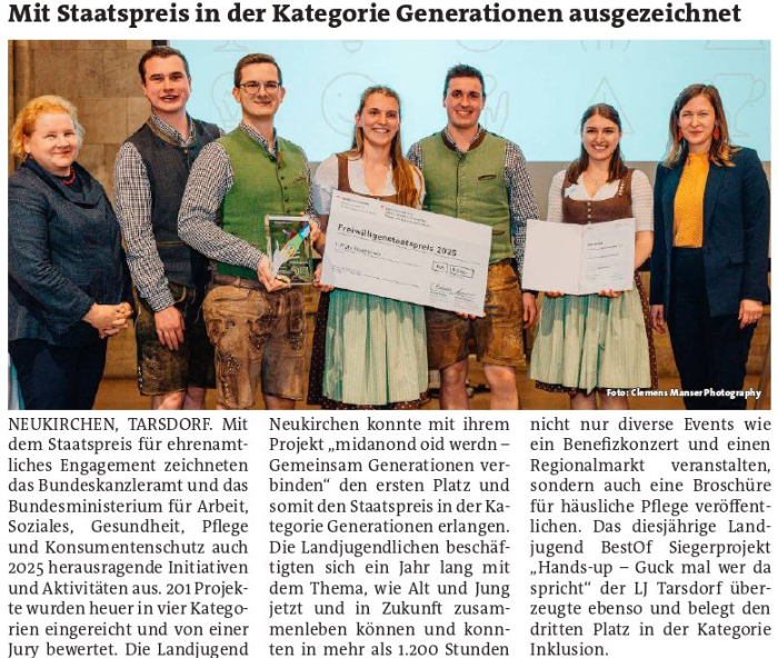 Mit Staatspreis in der Kategorie Generationen ausgezeichnet 31. Dezember 2025Allgemein, PresseSimone Redemann BezirksRundSchau 30./31. Dezember 2025