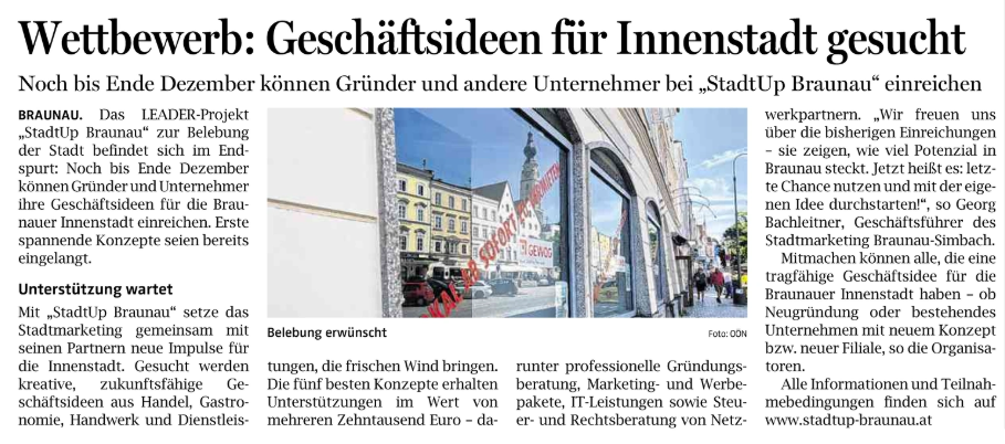 Wettbewerb: Geschäftsideen für Innenstadt gesucht 24. November 2025Allgemein, PresseSimone Redemann OÖ Nachrichten 24.11.2025